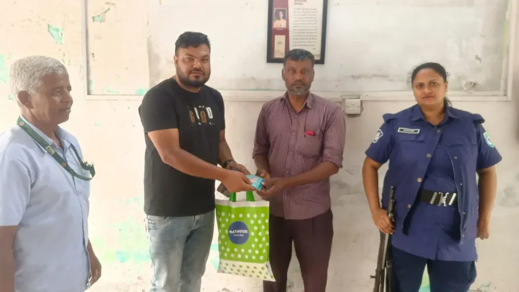 নীলফামারীর সৈয়দপুরে কুড়িয়ে পাওয়া টাকাভর্তি মানিব্যাগ মালিককে ফিরিয়ে দিয়েছেন পুলিশ সদস্য ফজলুল হক। মঙ্গলবার (৩১ মার্চ) বিকেলে সৈয়দপুর থানায় প্রকৃত মালিকের কাছে মানিব্যাগ হস্তান্তর করা হয়।