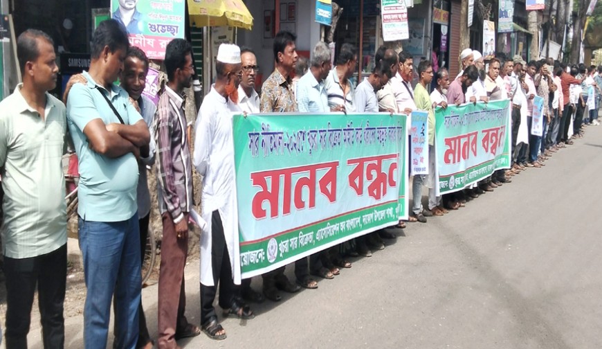 বৃহস্পতিবার বেলা ১১টায় দাকোপ উপজেলা সদর চালনা ডাক বাংলার মোড়ে সংগঠনের দাকোপ উপজেলা আহবায়ক সুকৃতি রায়ের সভাপতিত্বে ও সদস্য সচিব হযরত আলী সানার পরিচালনায় মানববন্ধনে বক্তৃতা করেন যুগ্ম আহবায়ক হায়দুল সানা, অর্থ সম্পাদক তাপস রায়, গাউসুল শেখ, আব্দুল হাই, অশোক মন্ডল, তুষার দাস, সজল সাহা, সুদীপ্ত গাইন, গৌরাঙ্গ ঘরামী, হায়দার গাজি, আনোয়ারুল গাজি, দীনবন্ধু মন্ডল প্রমুখ।